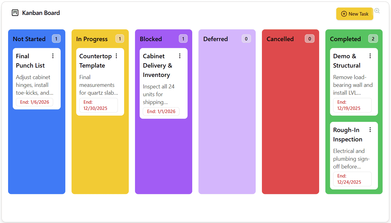 Task Creation & Updates: Create and update project tasks with a description, difficulty, and start/end dates to keep your crew on track.